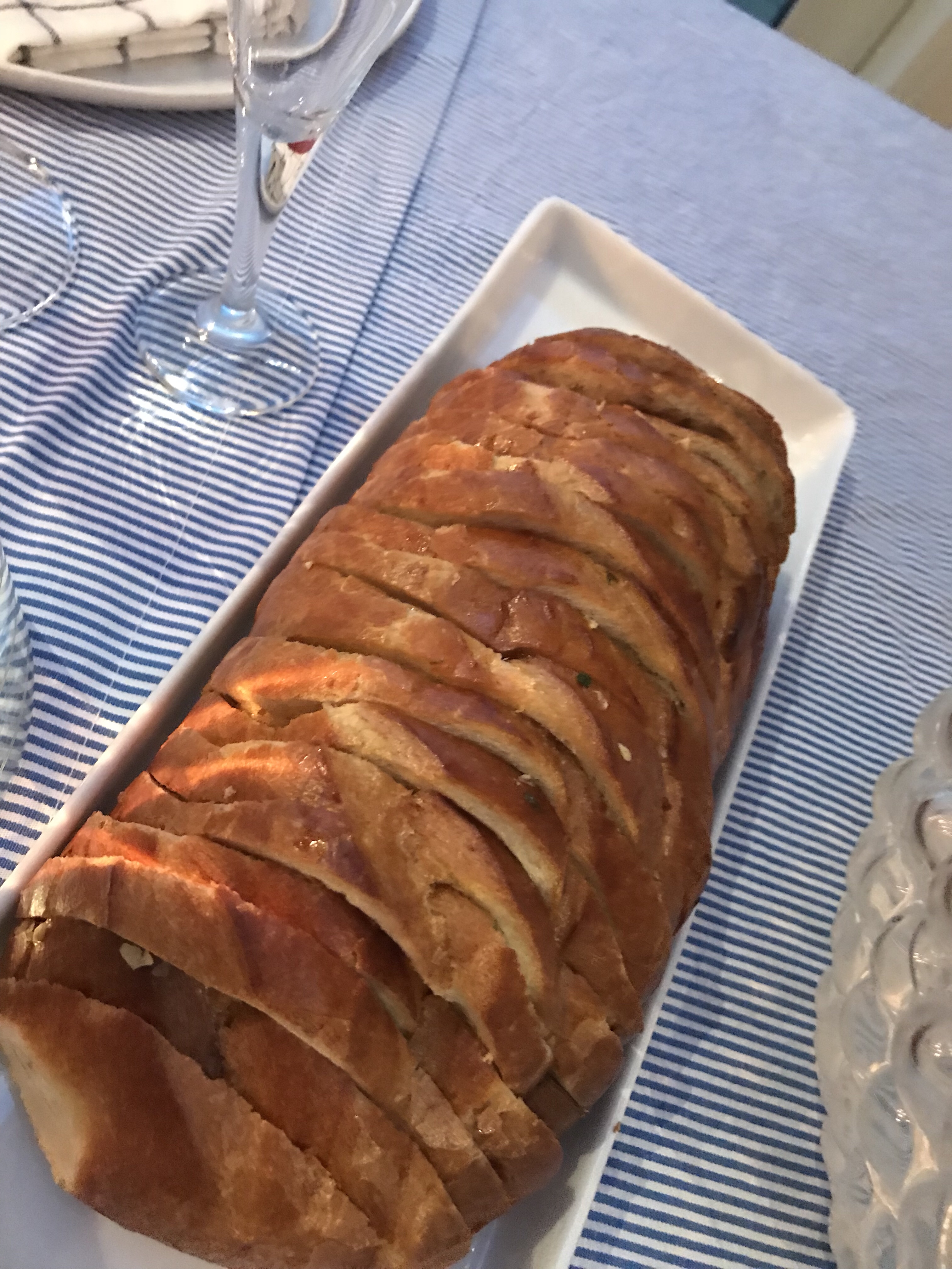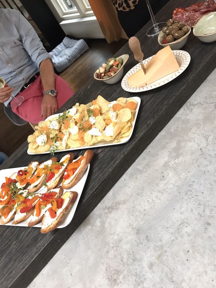 Vi inledde med bubbel, dillchips med löjrom och smetana! Dessutom rostad baugette med färskost och grillad paprika