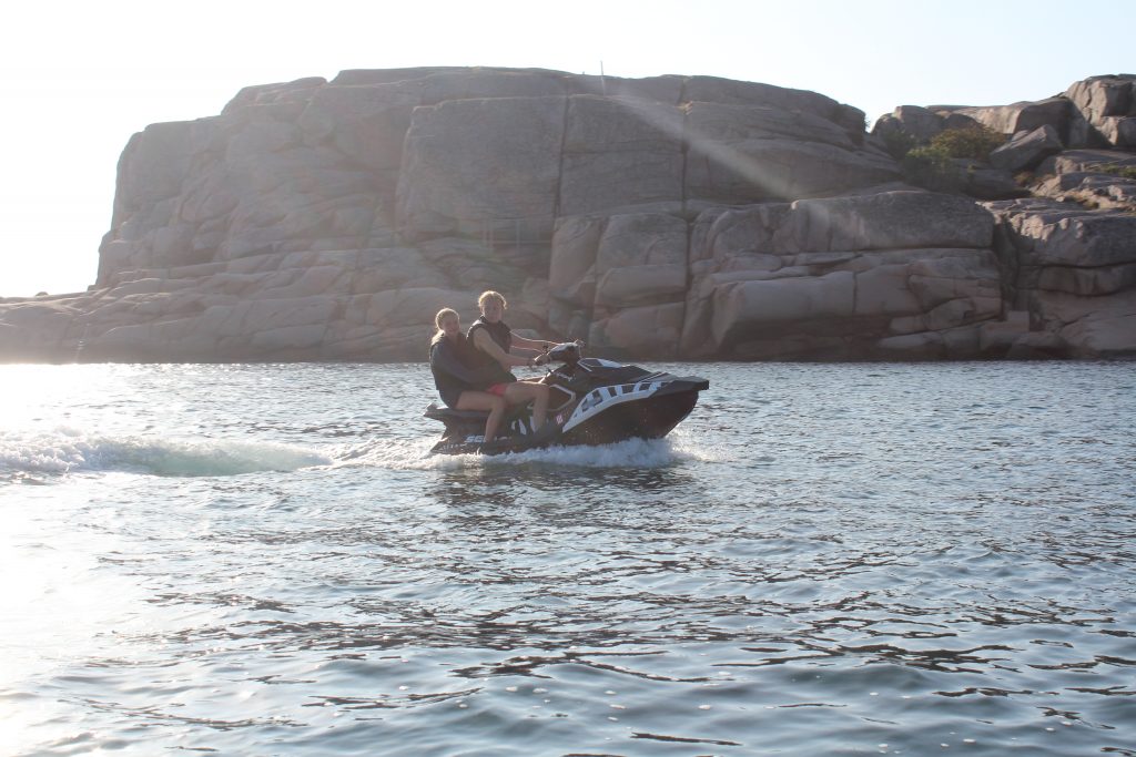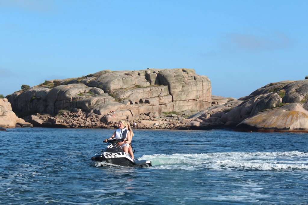 Men däremellan…! Så mycket kul vi har -och tur med vädret! Det blir bad, bad, bad… och leka med vattenskotern, hoppa högst från landgången