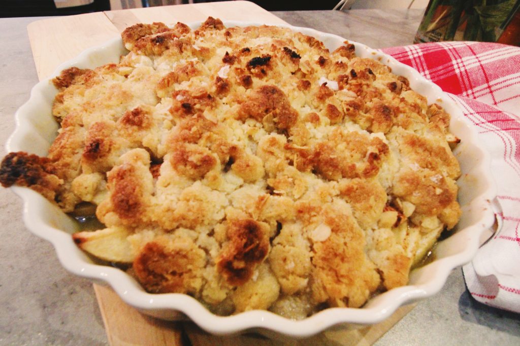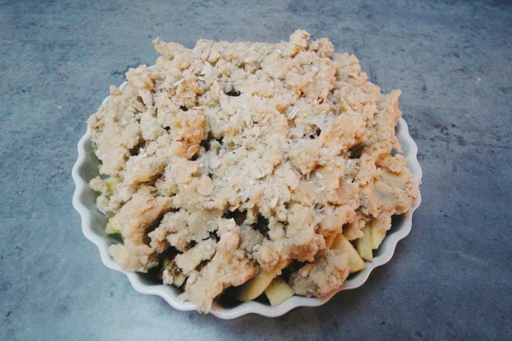 Till dessert bakade jag en äppelpaj med smuldeg. Improviserade lite på just smuldegen