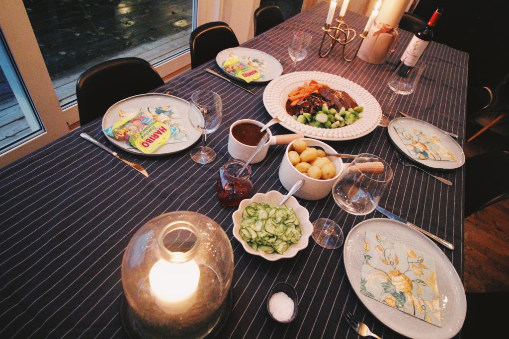 Dukade i vanlig ordning med godispåsar och extra goda drickor till barnen (som på varje söndagsmiddag)