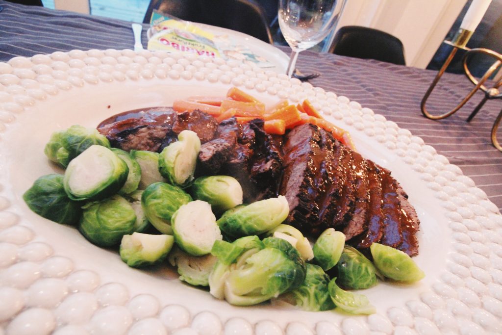 Jag följde ett recept från Matplatsen som har några år på nacken. Det är så lätt att laga och såsen är faktiskt galet god! Steken sköter sig själv på spisen medan man kan ägna sig åt annat.