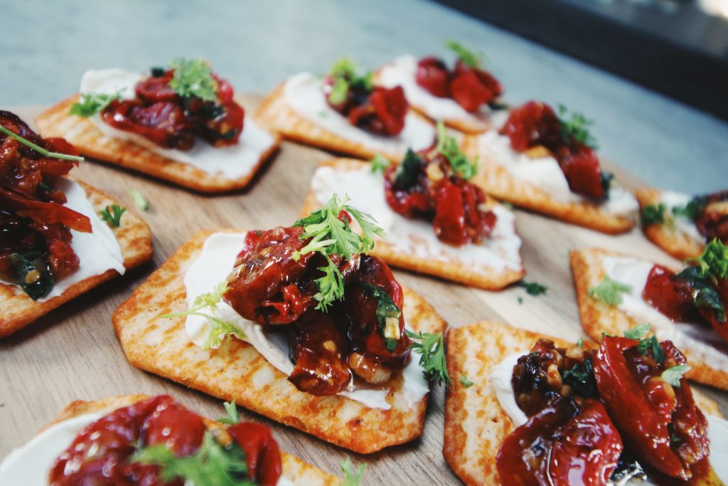 De andra då? Jo men nu i tomattider så är de semitorkade tomaterna som marineras i olivolja, honung och vitlök toppen till en snäll Philadelphiaost på krispigt kex