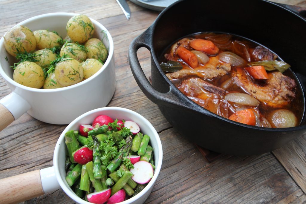 Igår blev det ölbräserads fläskkotletter med dillslungad färskpotatis och råstekt sparris