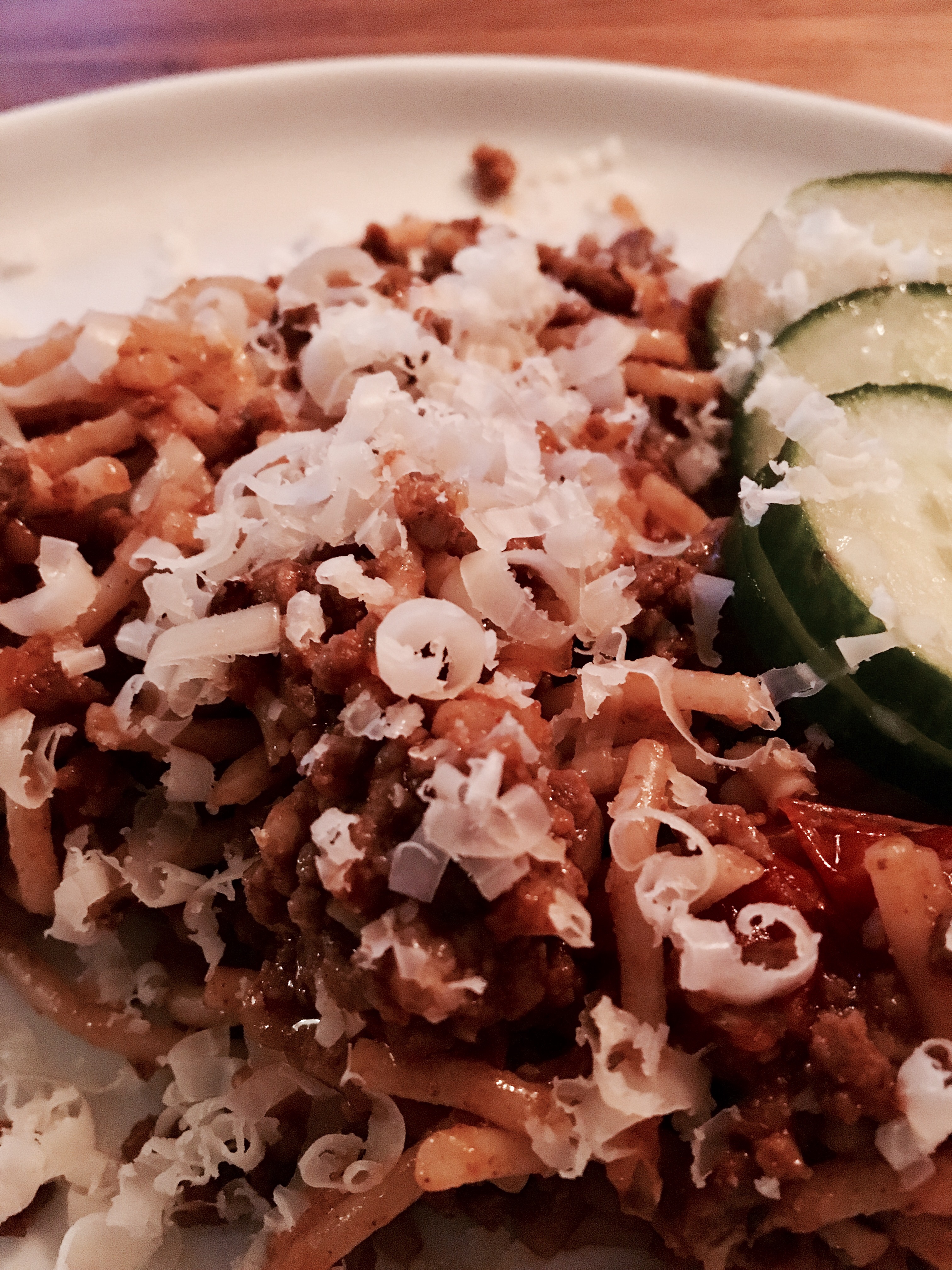 Tog lunchen som blev över och stekte köttfärssås och pastan och toppade med riven tryffelpecorino. Grymt! Bättre än restaurang!