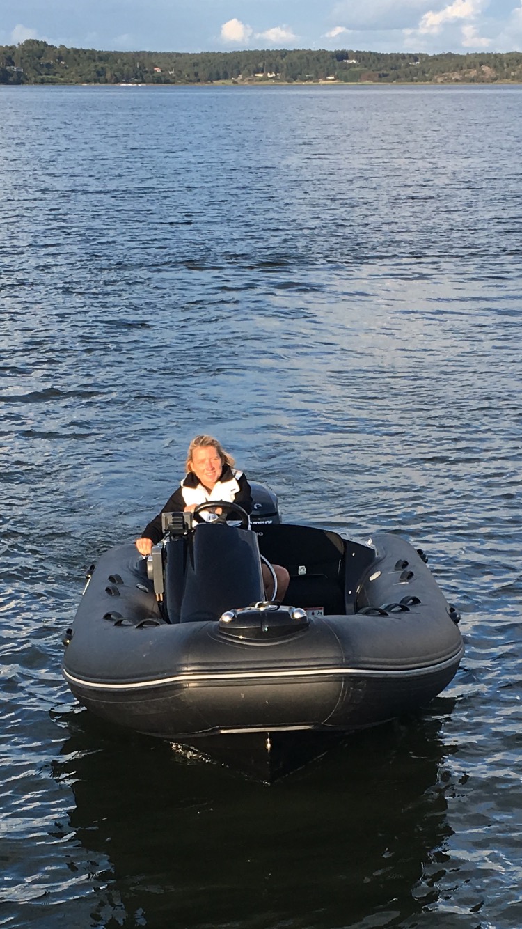 För att låta barnen visa gummibåten även för kompisar hemma tog vi med oss båten hem till Onsala och fixade båtplats. Vi lämnade barnen hos sina andra föräldrar och sjösatte sedan gummibåten i Gottskär. Vem körde hem båten!? Me!