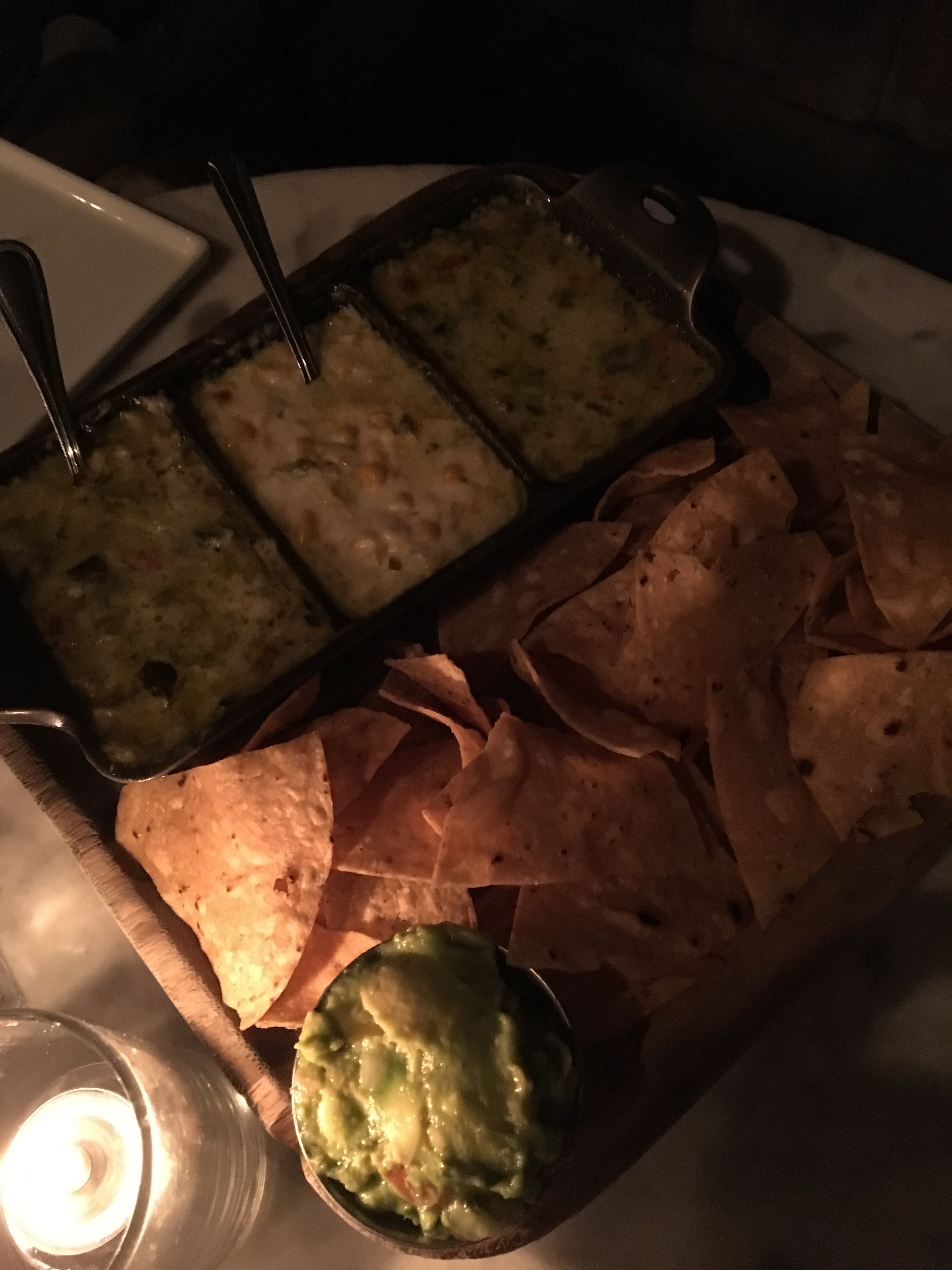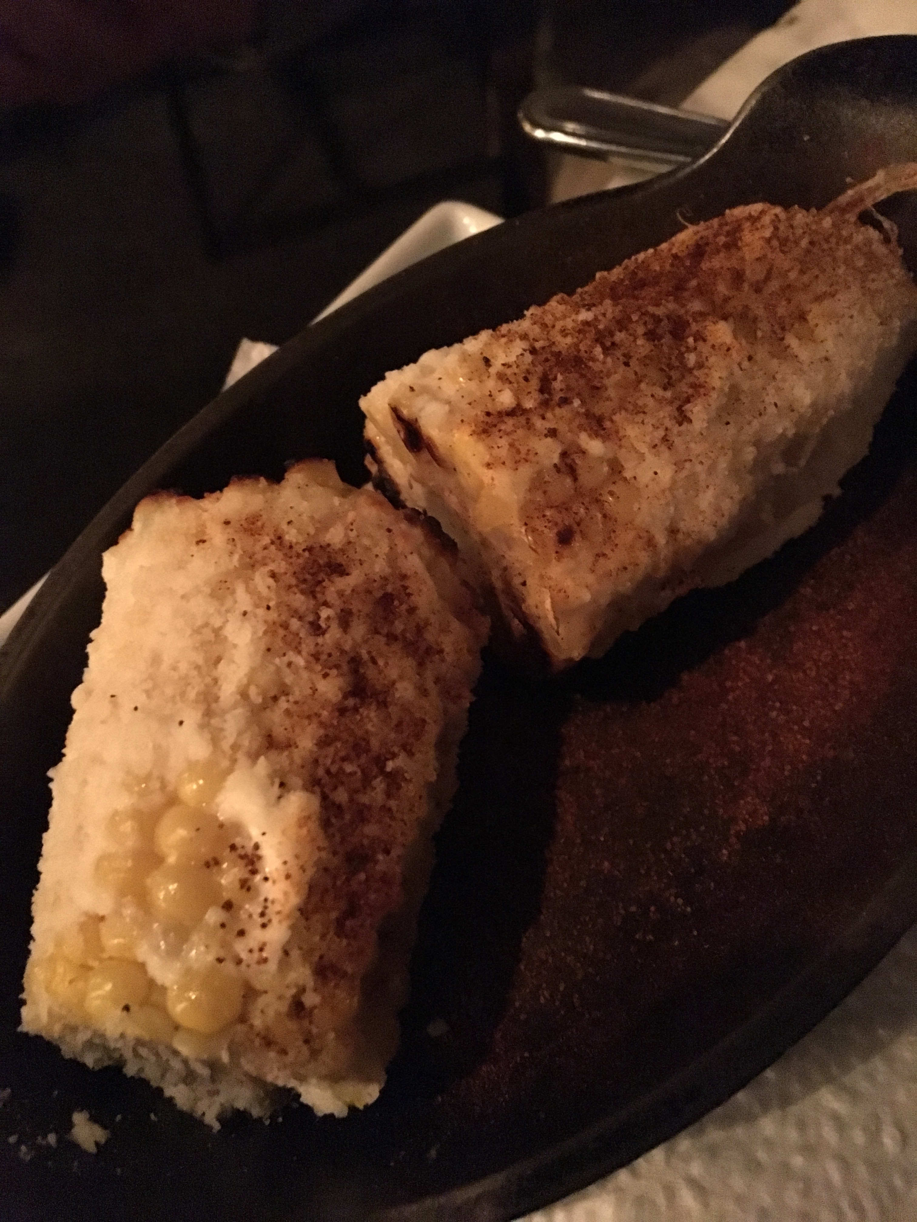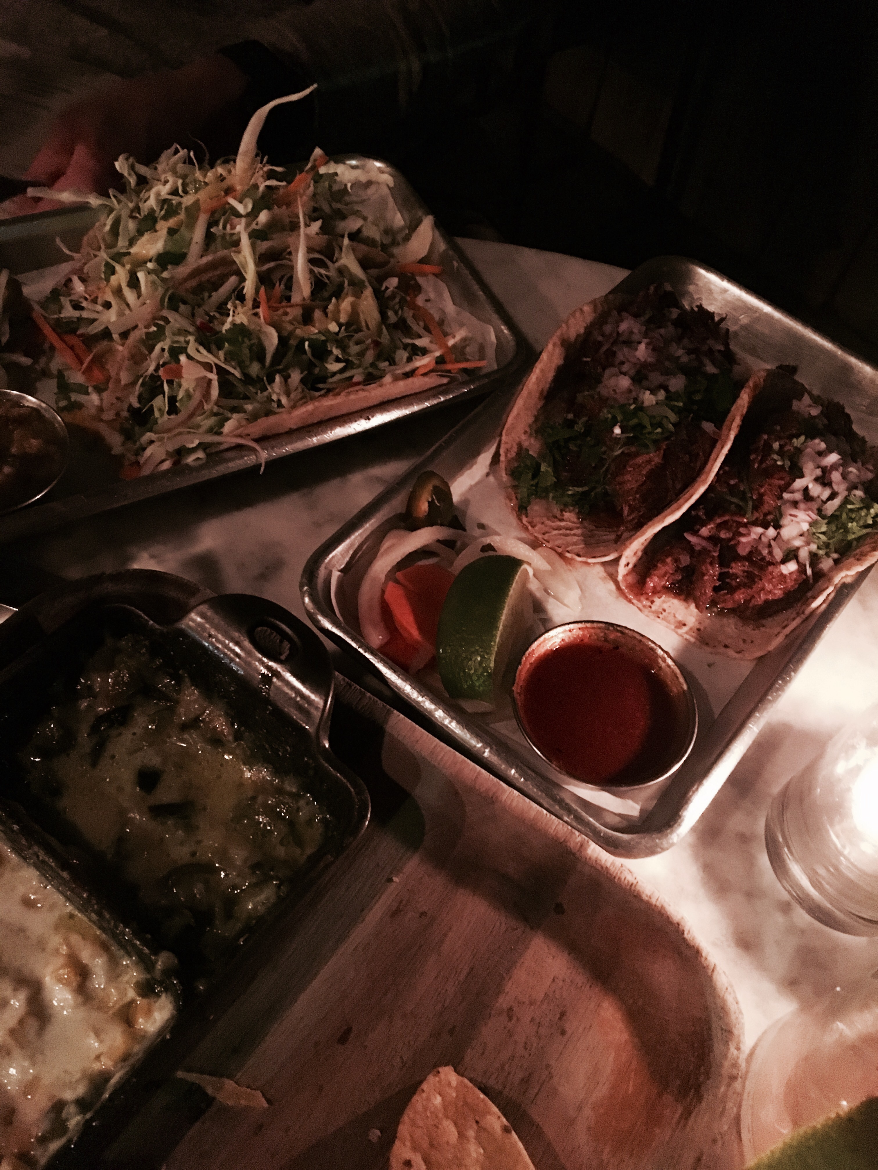 Vi valde olika tacos, corn on the cob och en smarrig bricka med olika smälta ostar och nachochips!