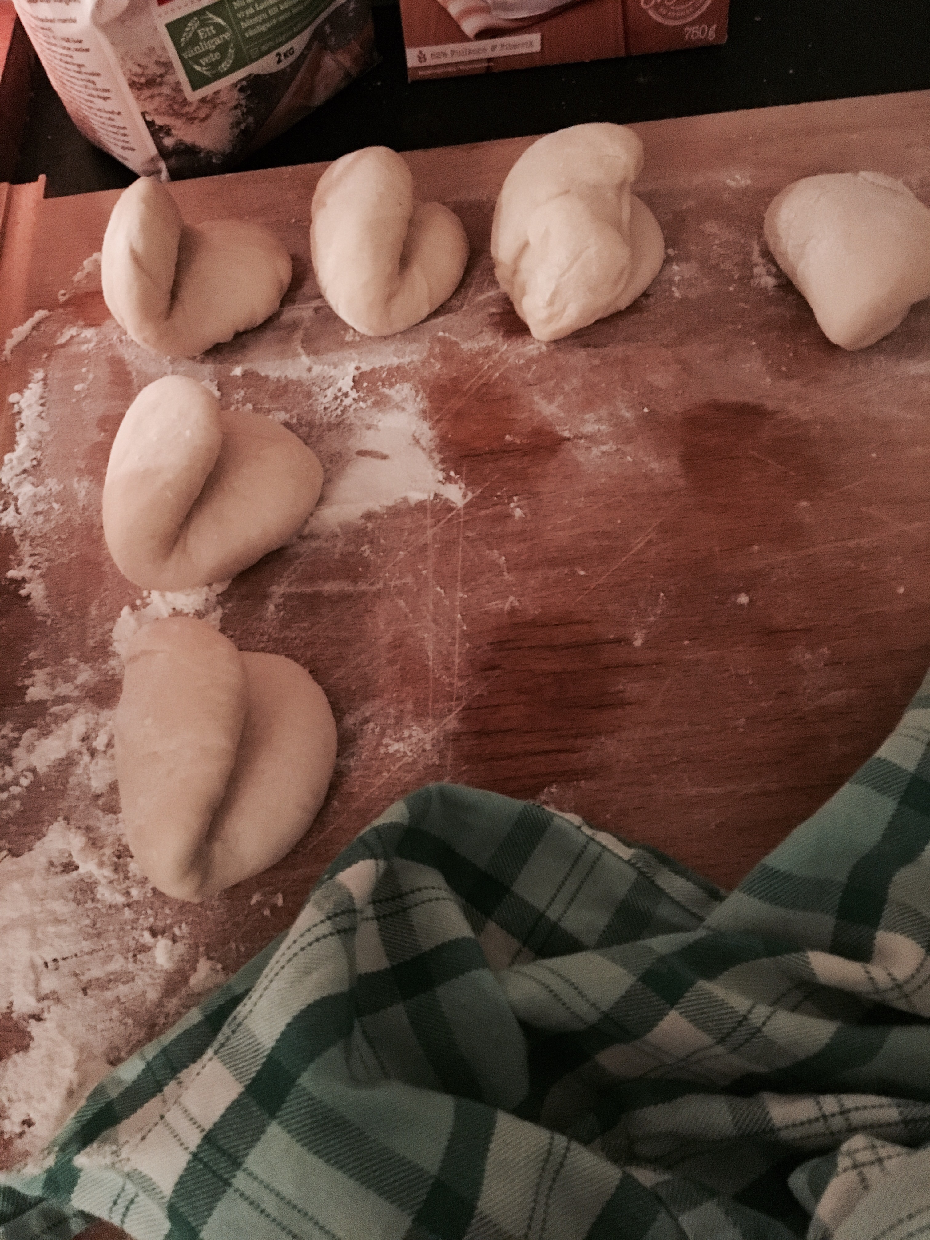 Fick hjälp med degknådning då vi insåg att nästan alla bak-saker var nedpackade… och denna degen skall arbetas rejält! Haha, blev ett träningspass 💪