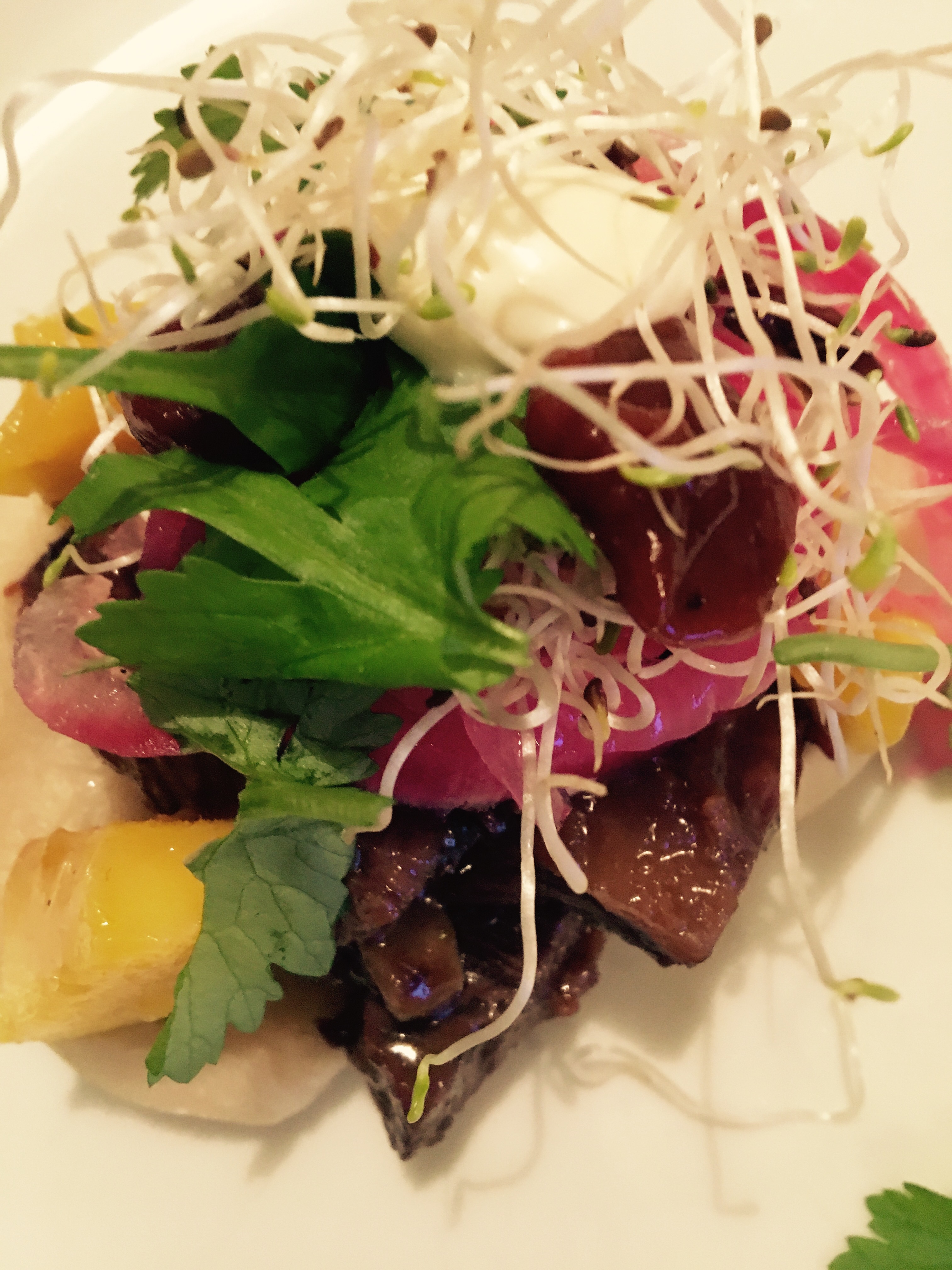 Hemma fixade vi soft buns med högrev, aioli och picklad rödlök. Hade också mango, avocado och lite annat.