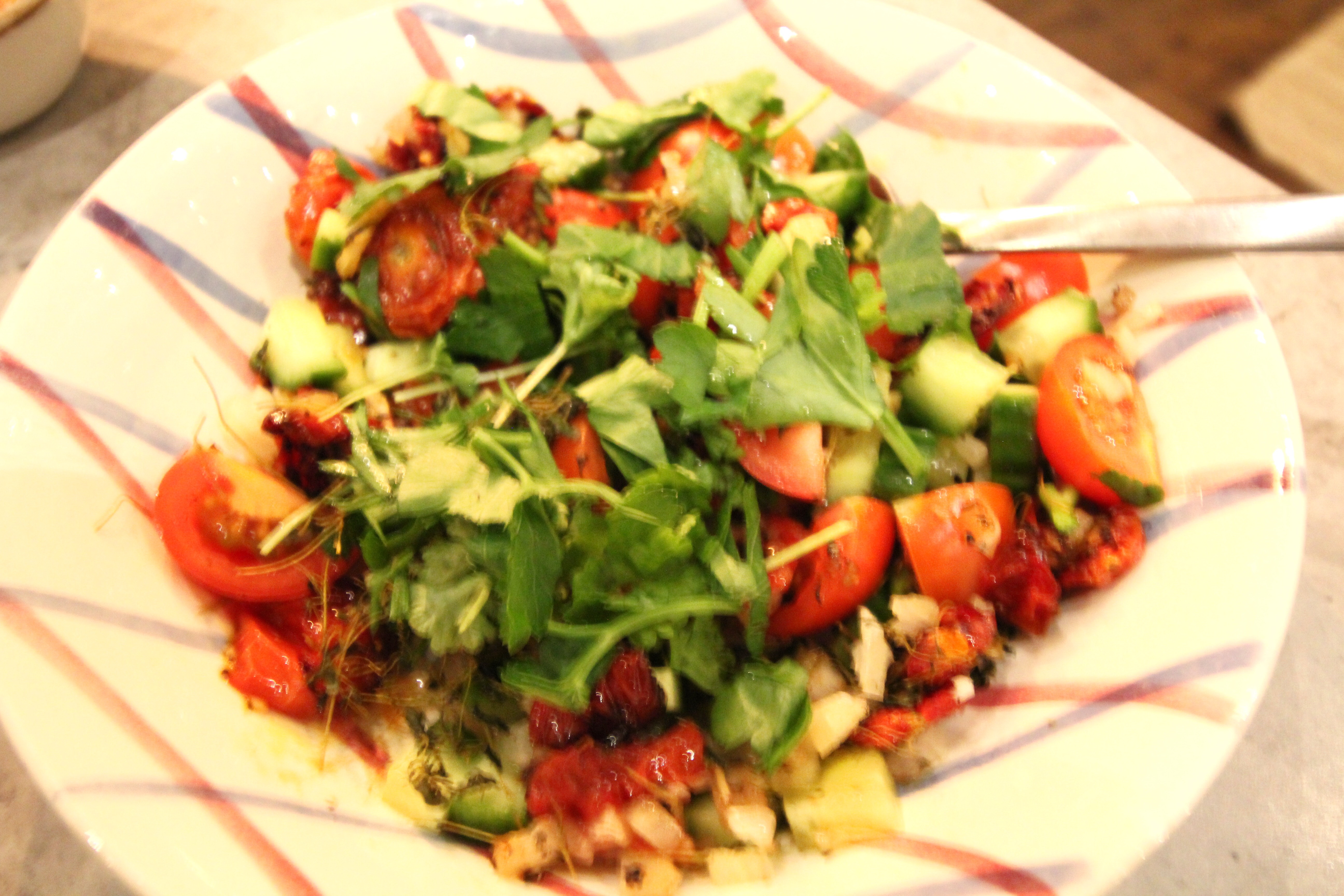 Idag blandade jag semitorkade tomater med timjan, vitlök och olja med färska plommontomater och gurka i en av dessa. Love varje gång! #Rut