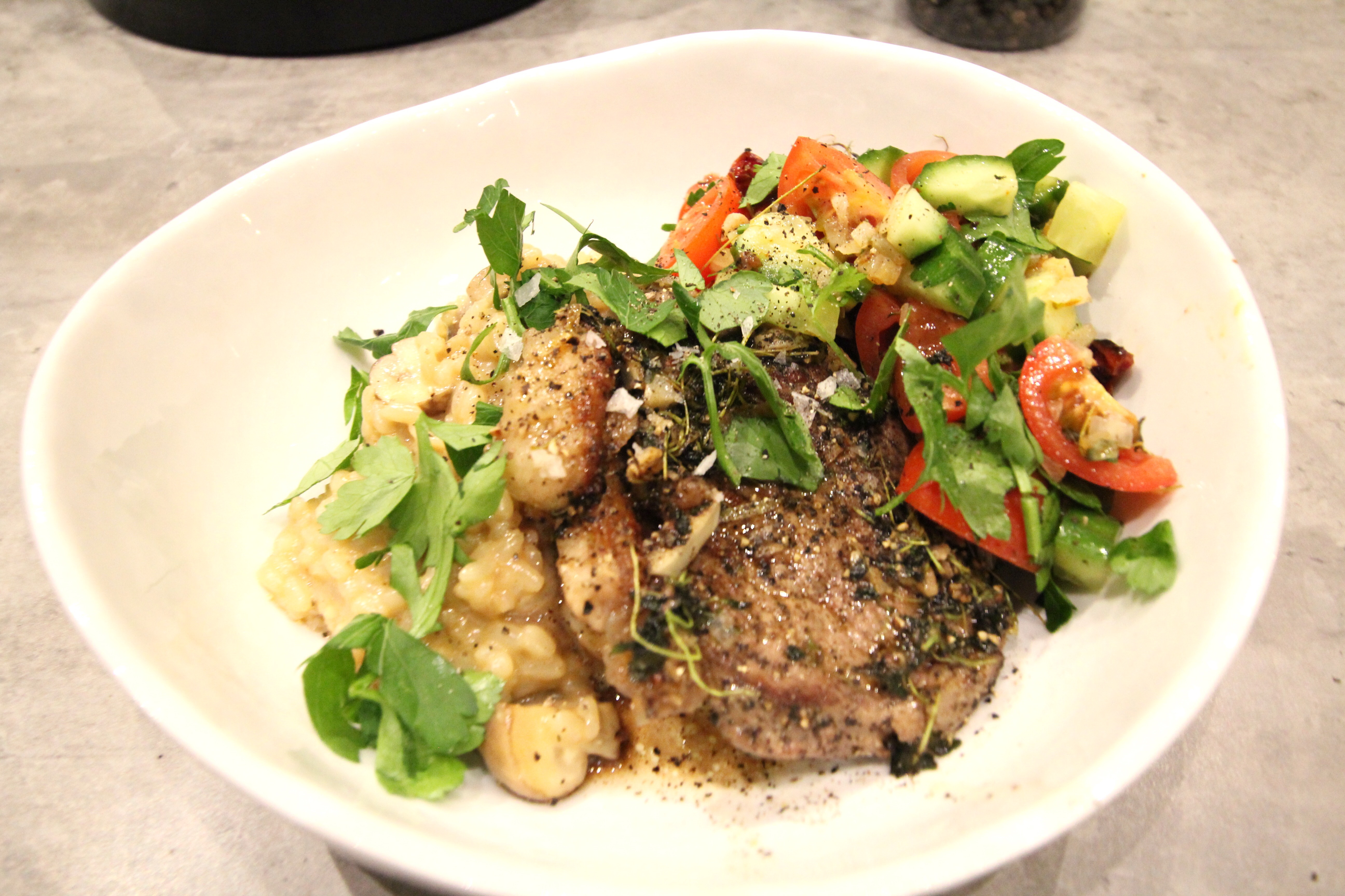 Till middag (i soffan till Bron) tryffelrisotto med ryggbiff och tomatsallad.