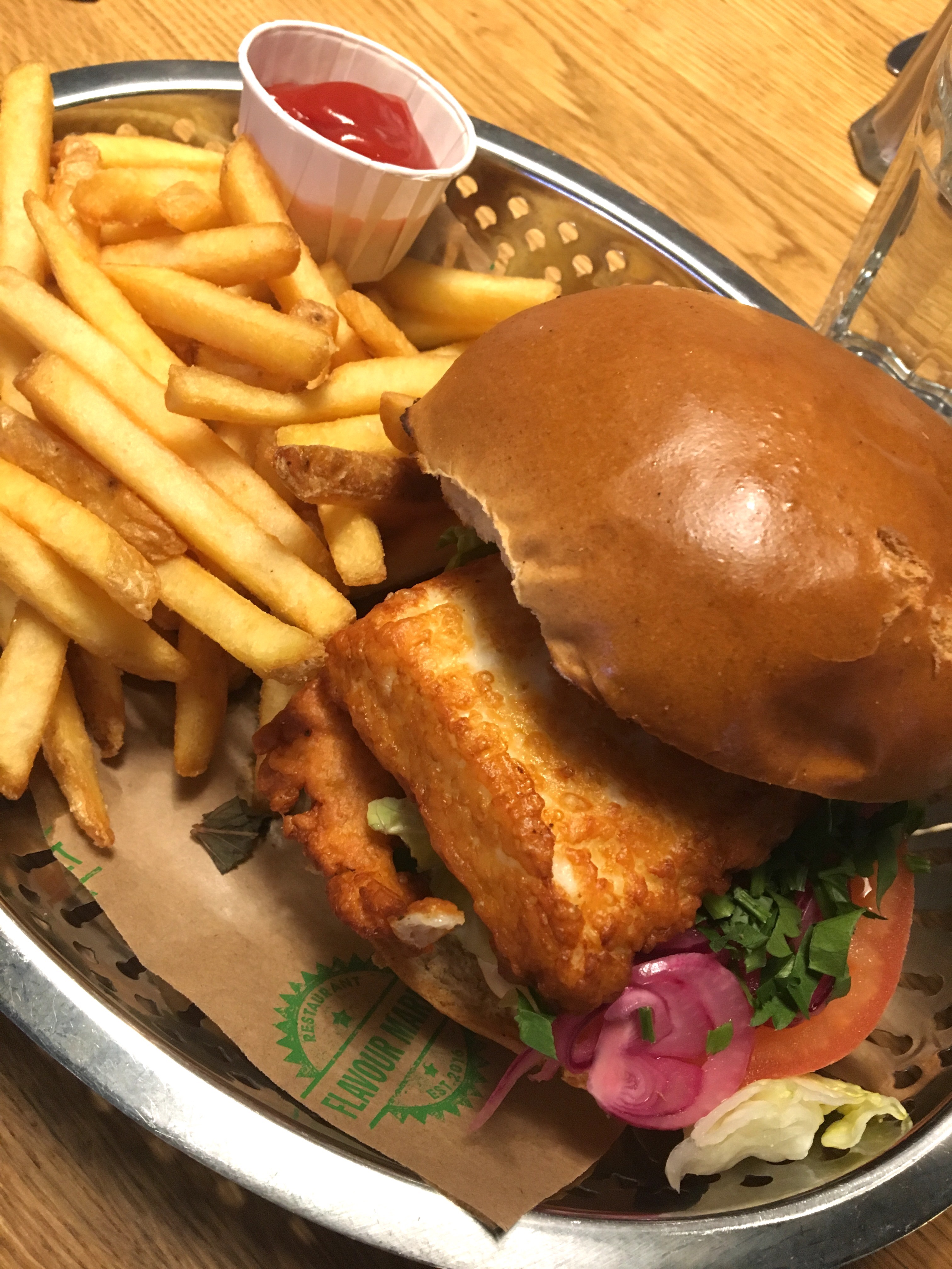Idag åt vi lunch på Flavour Market. Jag provade en halloumiburger som var grym! Plockade dock kött från övriga… hehe