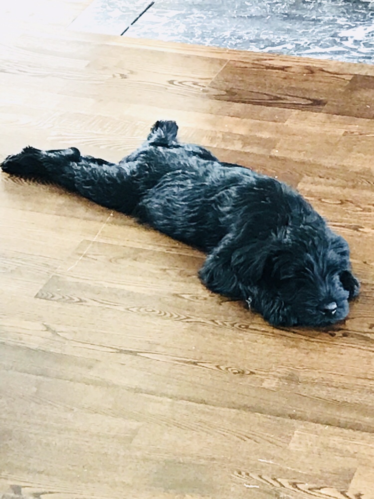 Kissade och åt hemma och ligger nu utslagen på golvet och drömmer om alla fina tikar han träffat idag❤️