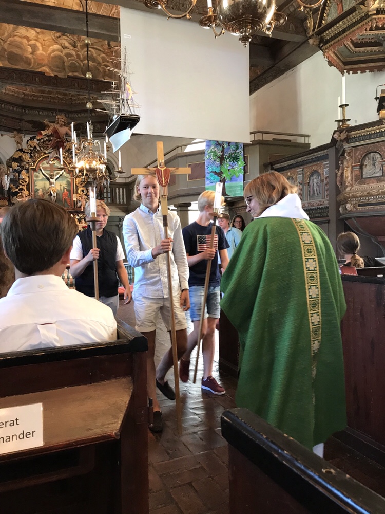 Dagen därpå var det högmässa och min lille prins bar korset in i kyrkan! Stolt som en höna var jag.