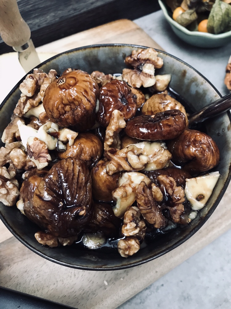 Gjorde en kompott på Soltorkade Fikon, balsamico, honung, valnötter och ädelost… gott…