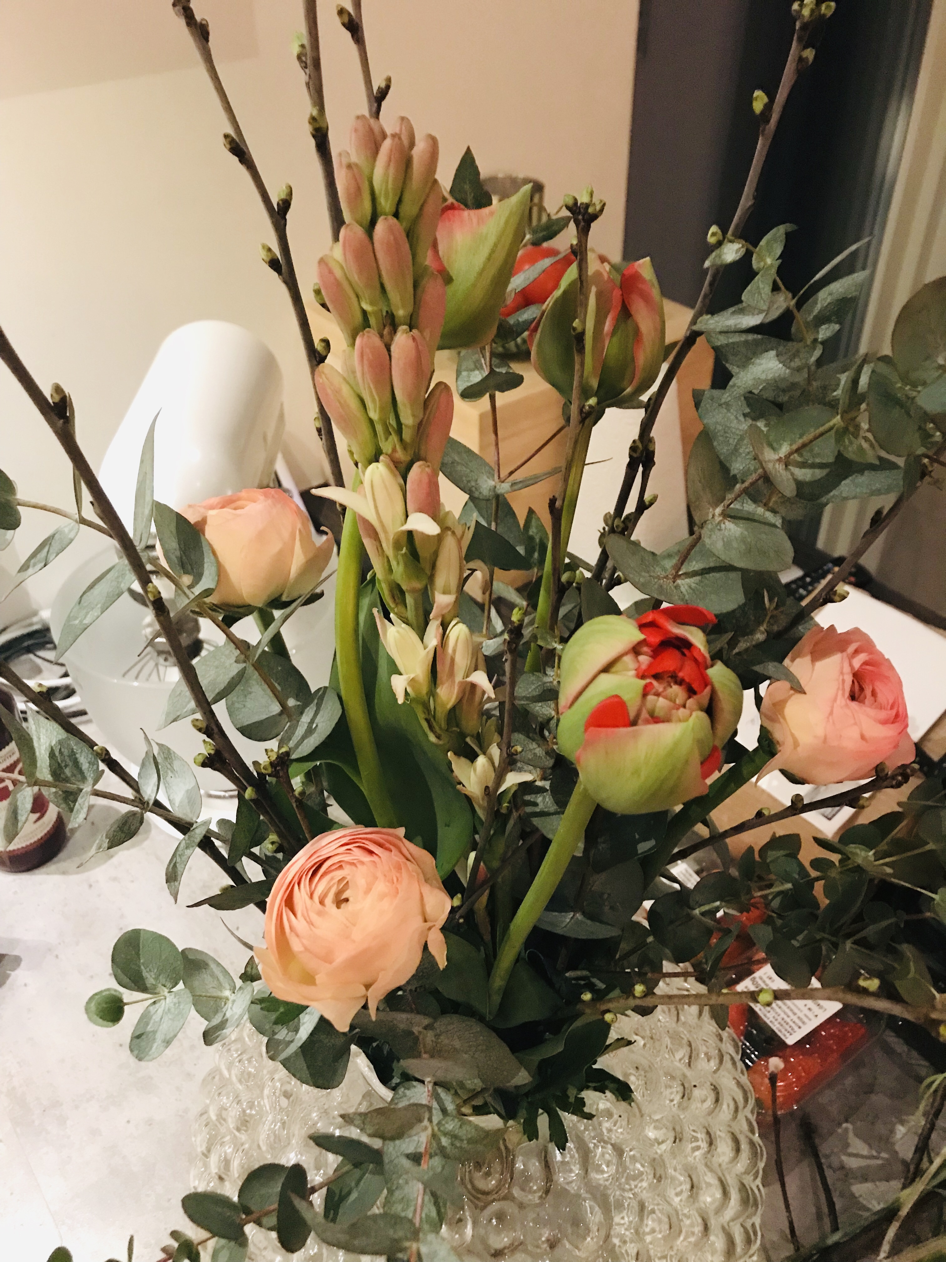 Igår firade vi hemma med bubbel och paket! Fick lite feedback på att jag var mer nöjd med blommorna än av fina presenter, men sån är jag! Älskar ju blommor! Och födelsedagsbuketten var perfekt med franska tulpaner och ranunkel i perfekta färger!