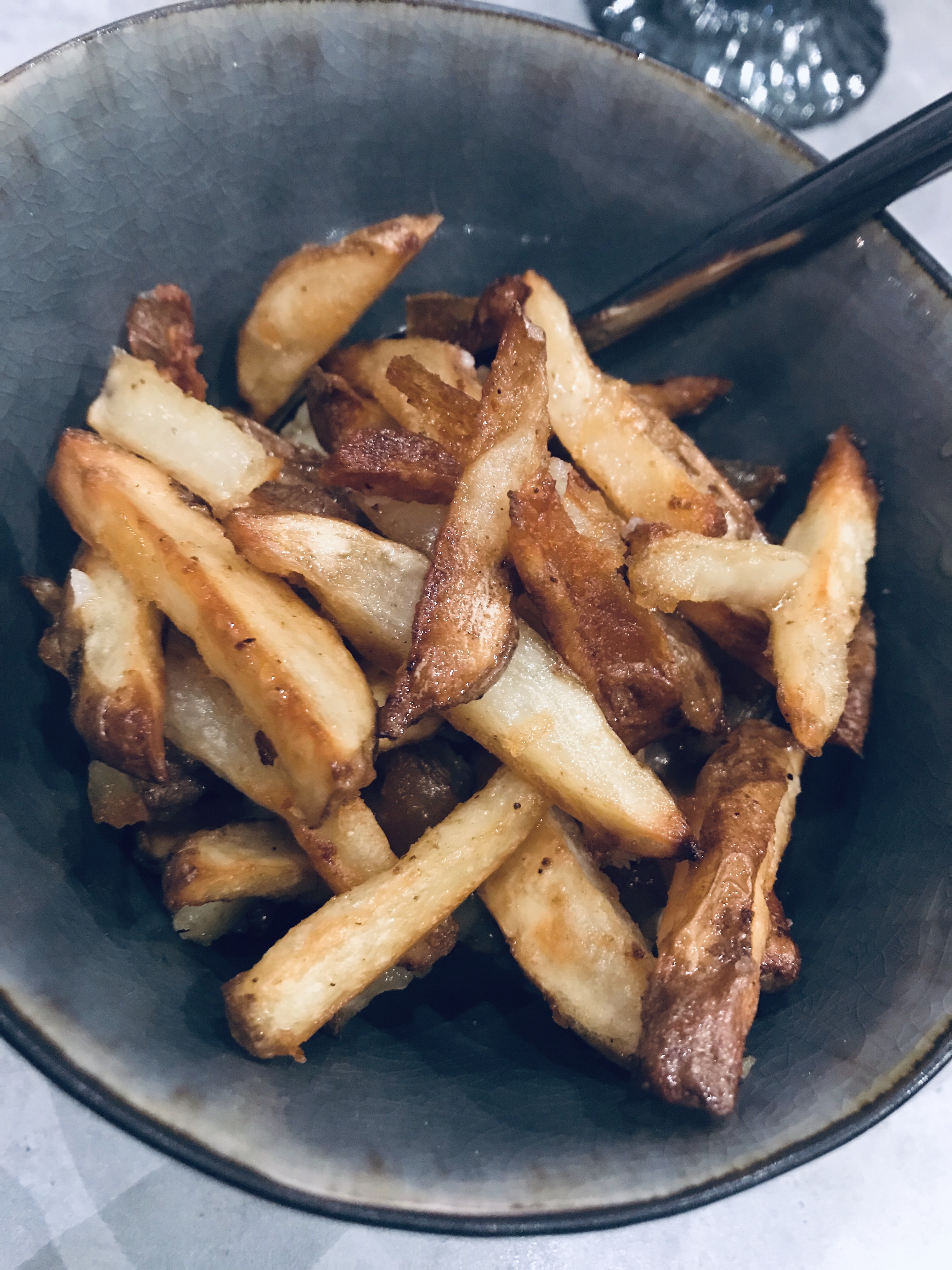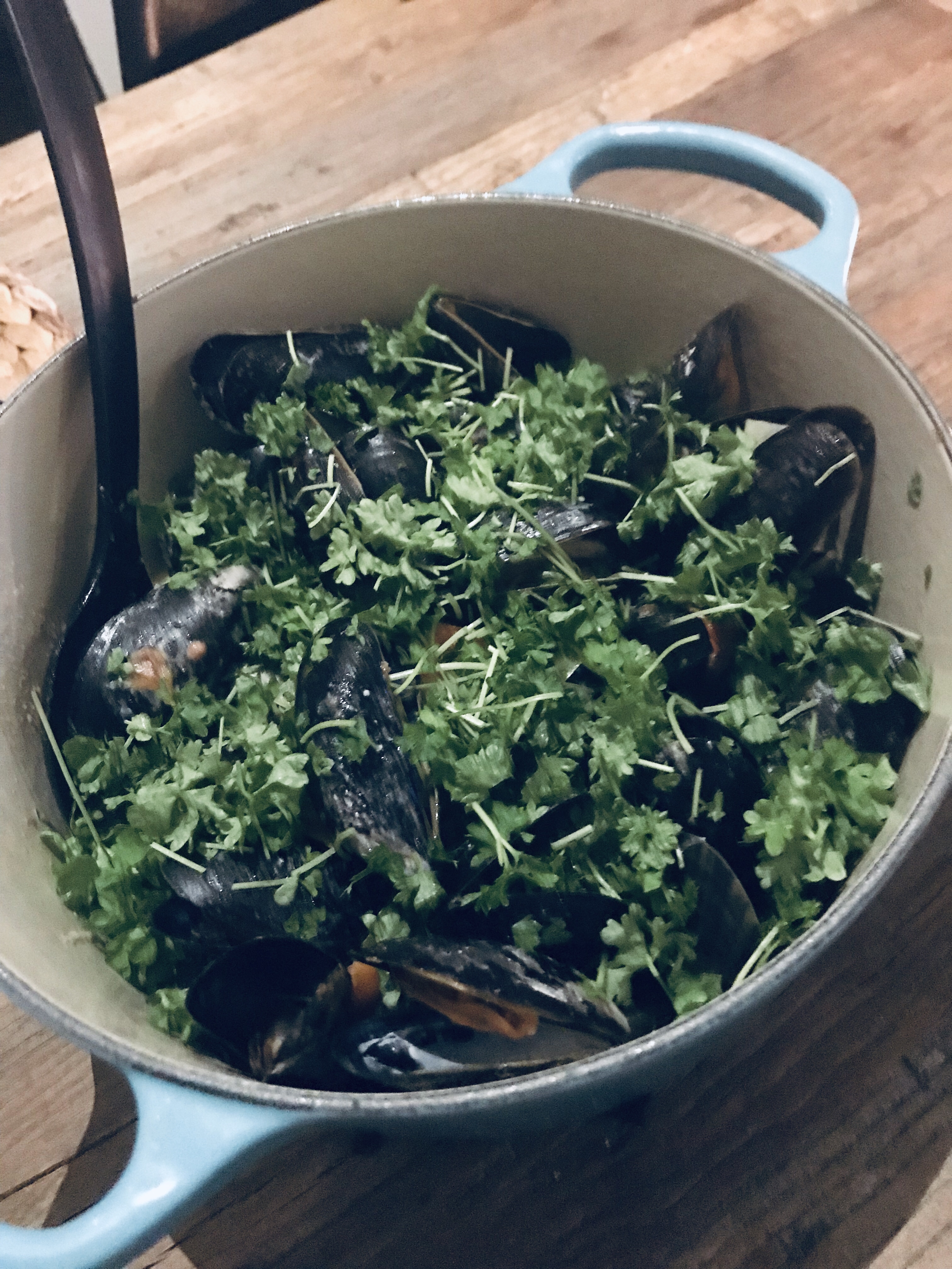 Vi åt moules Marnier med hemmagjorda pommes frites. Så gott!