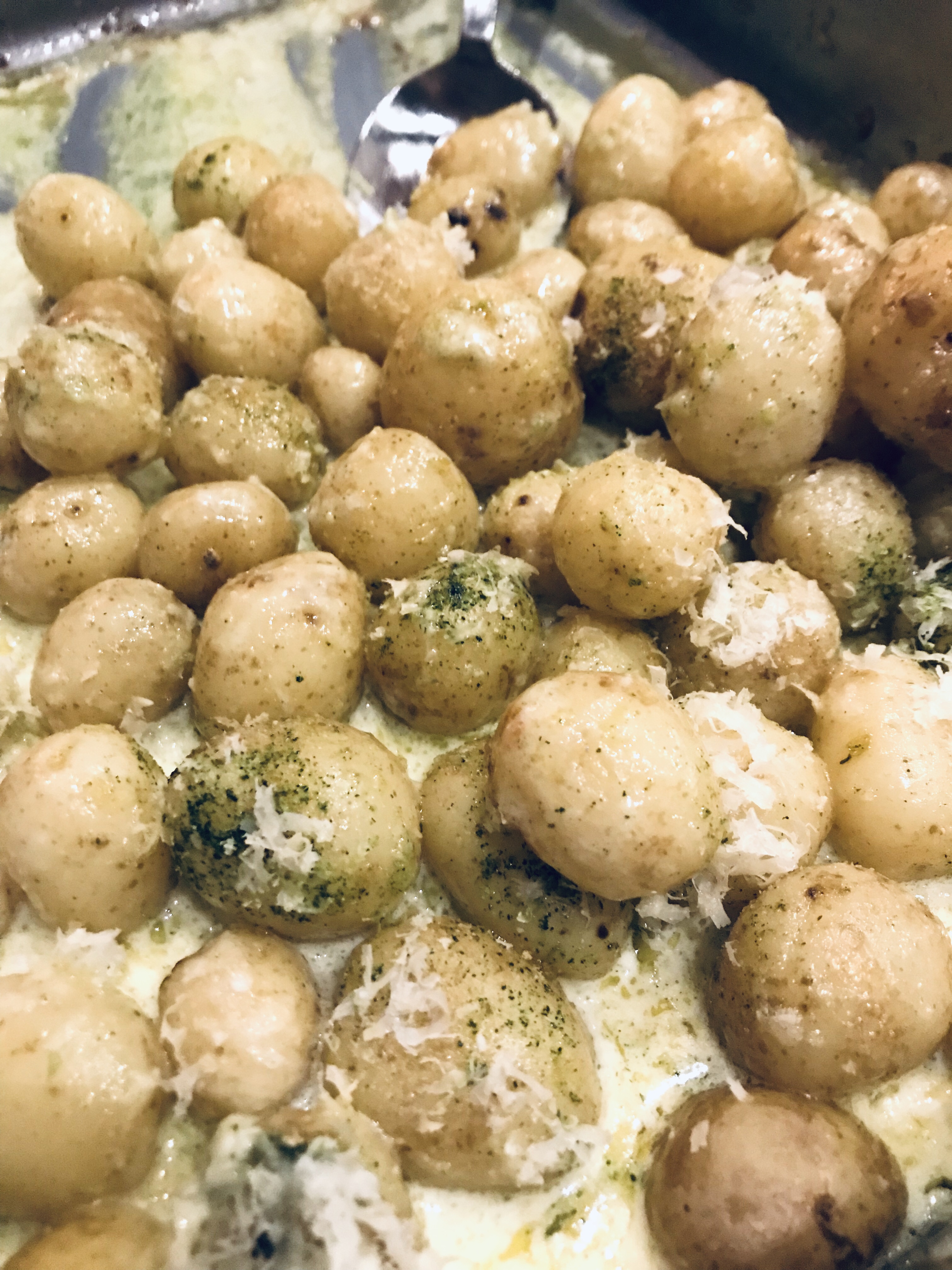 Till det parmesanpotatis och vitlöksbröd