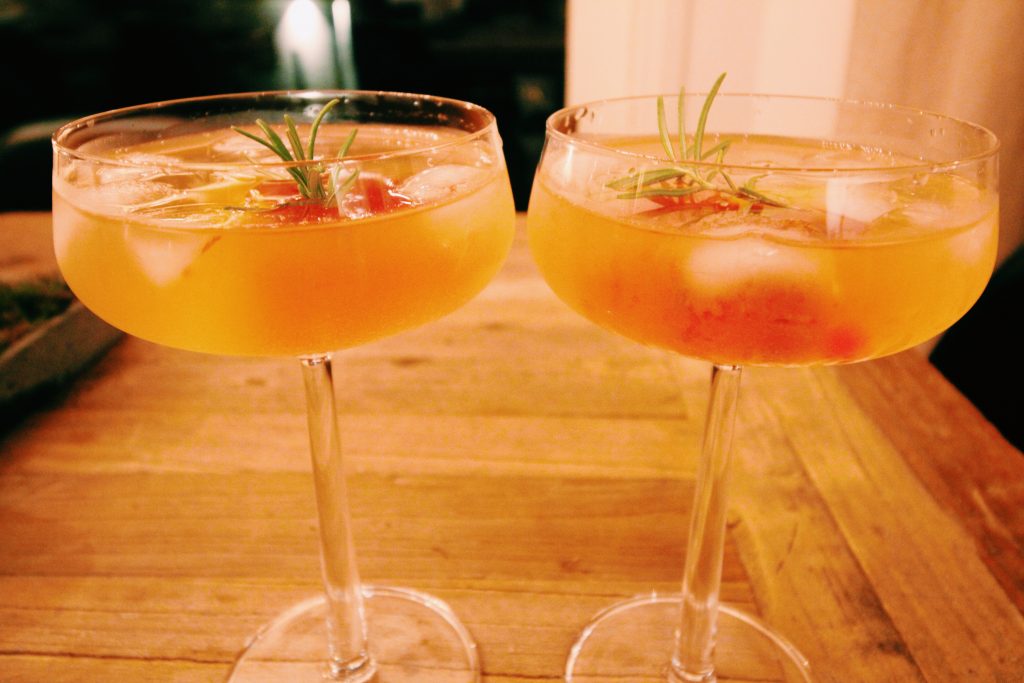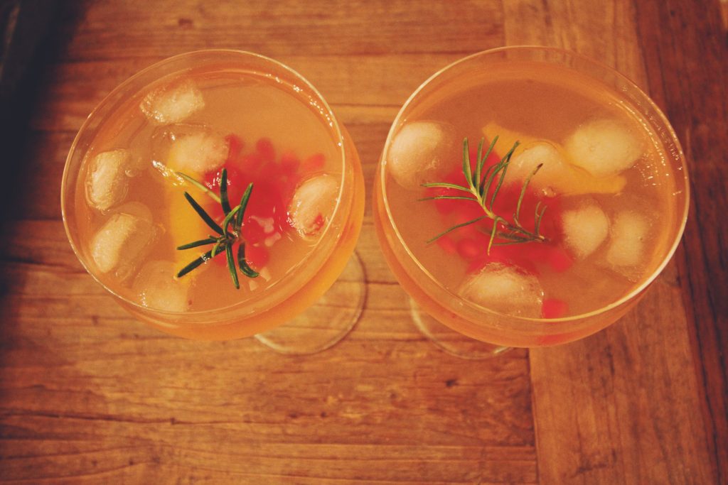 Sila bort kryddorna och blanda lagen med 1 dl gin och en flaska rosévin.