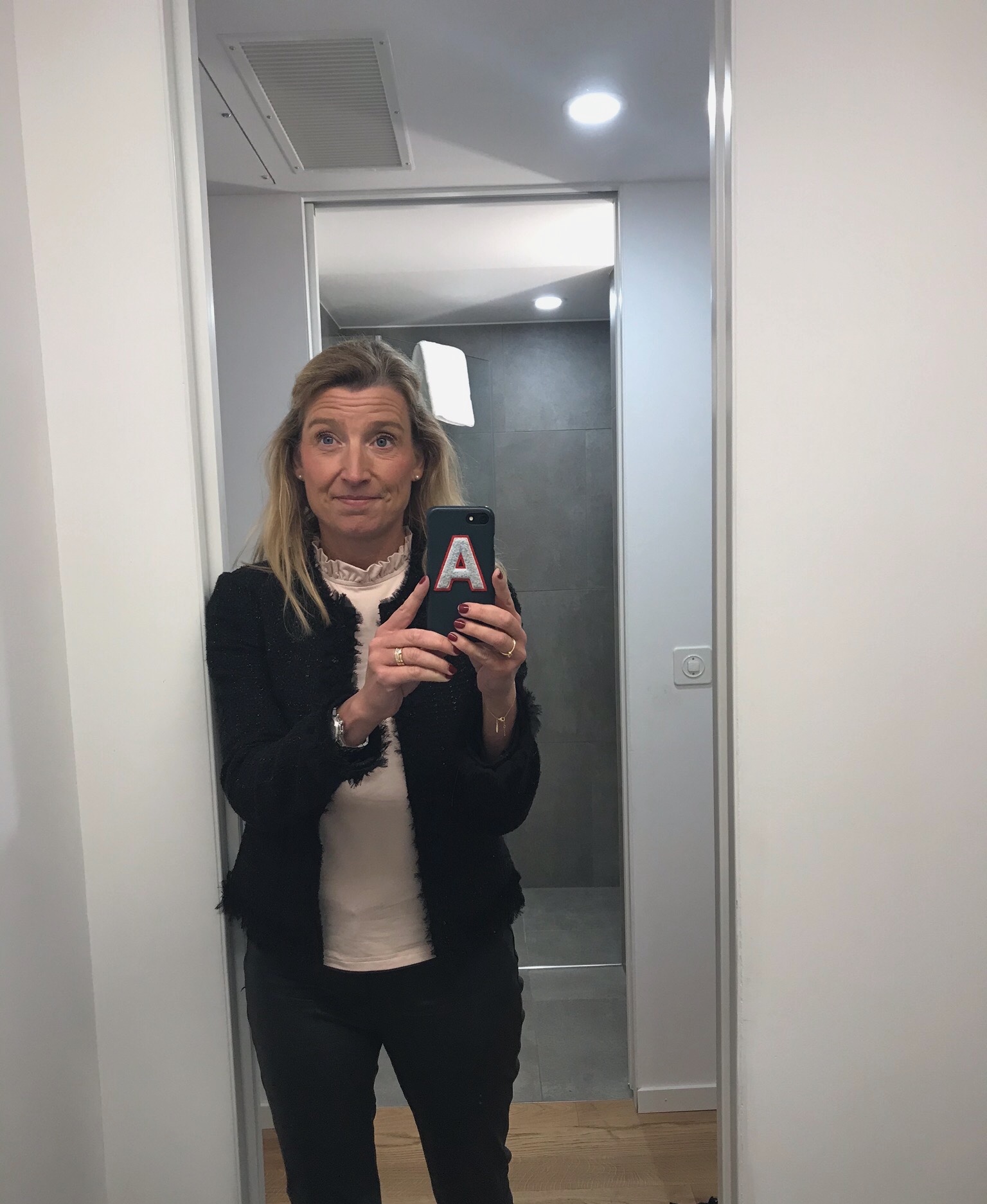 Så här glad är jag efter en intensiv dag! Nu pudra näsan och möta upp gänget för middag på stan!