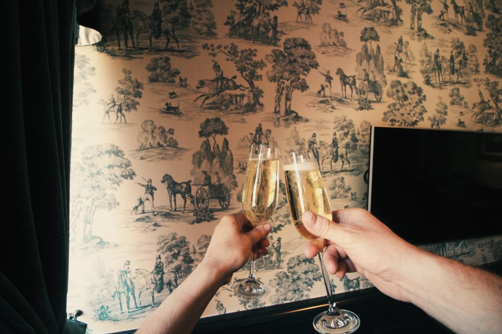 Sedan blev det lite vila på hotellrummet innan vi bytte om och skålade i Taittanger, precis som för två år sedan