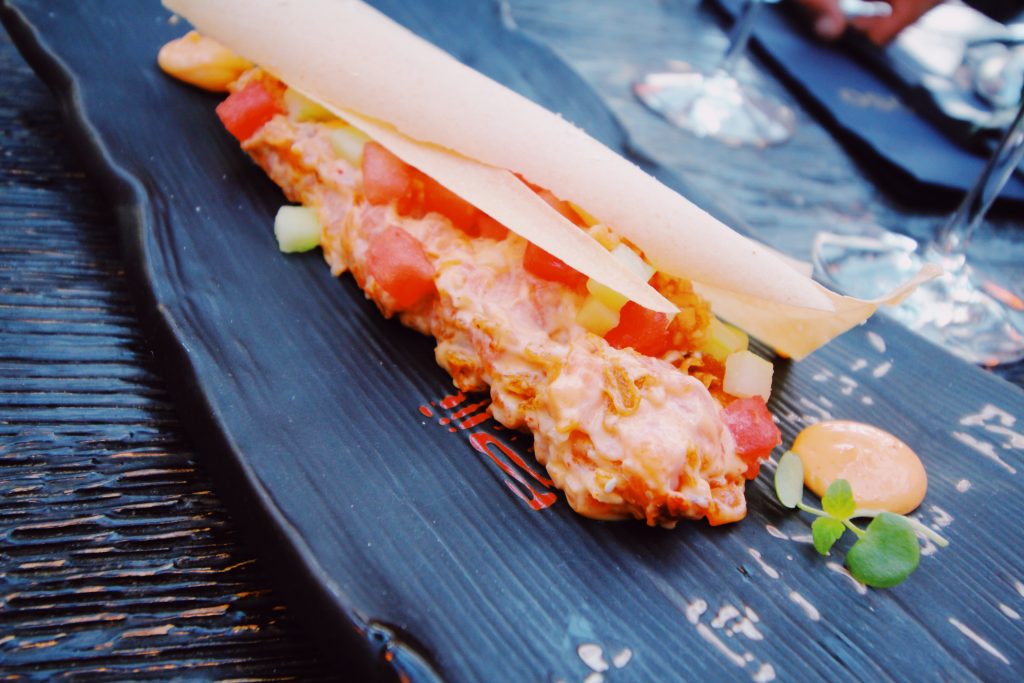 Det blev bl a laxtartar, råbiff, chicken wings och shrimps