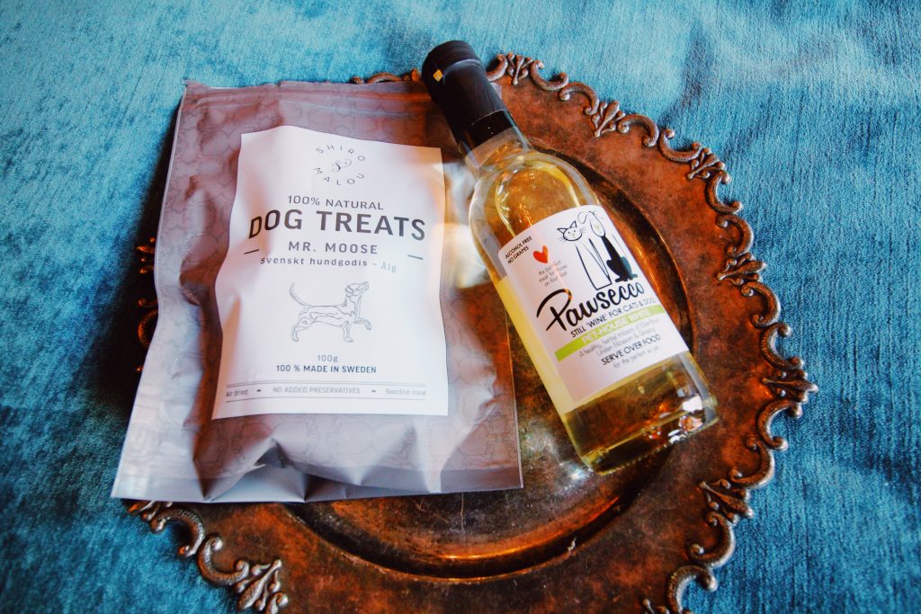 Med en alldeles underbar liten hundsäng och en silverbricka med hundvin och älggodis. Kan man ha det bättre?