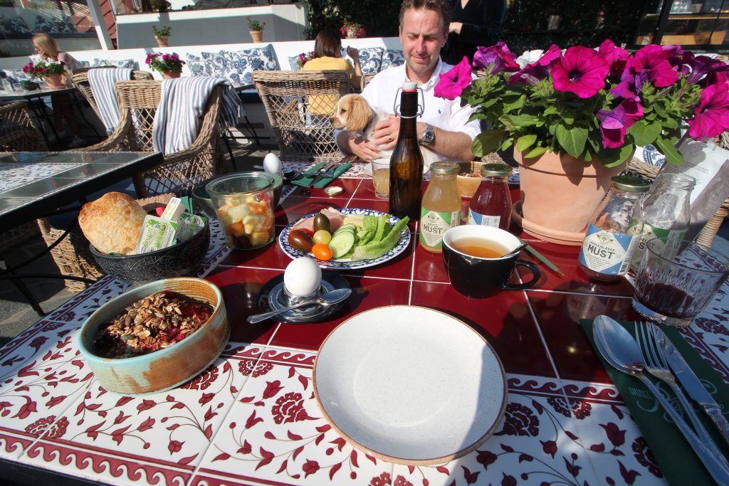 Vi sov som stockar och vaknade upp till en mysig frukost på takterassen