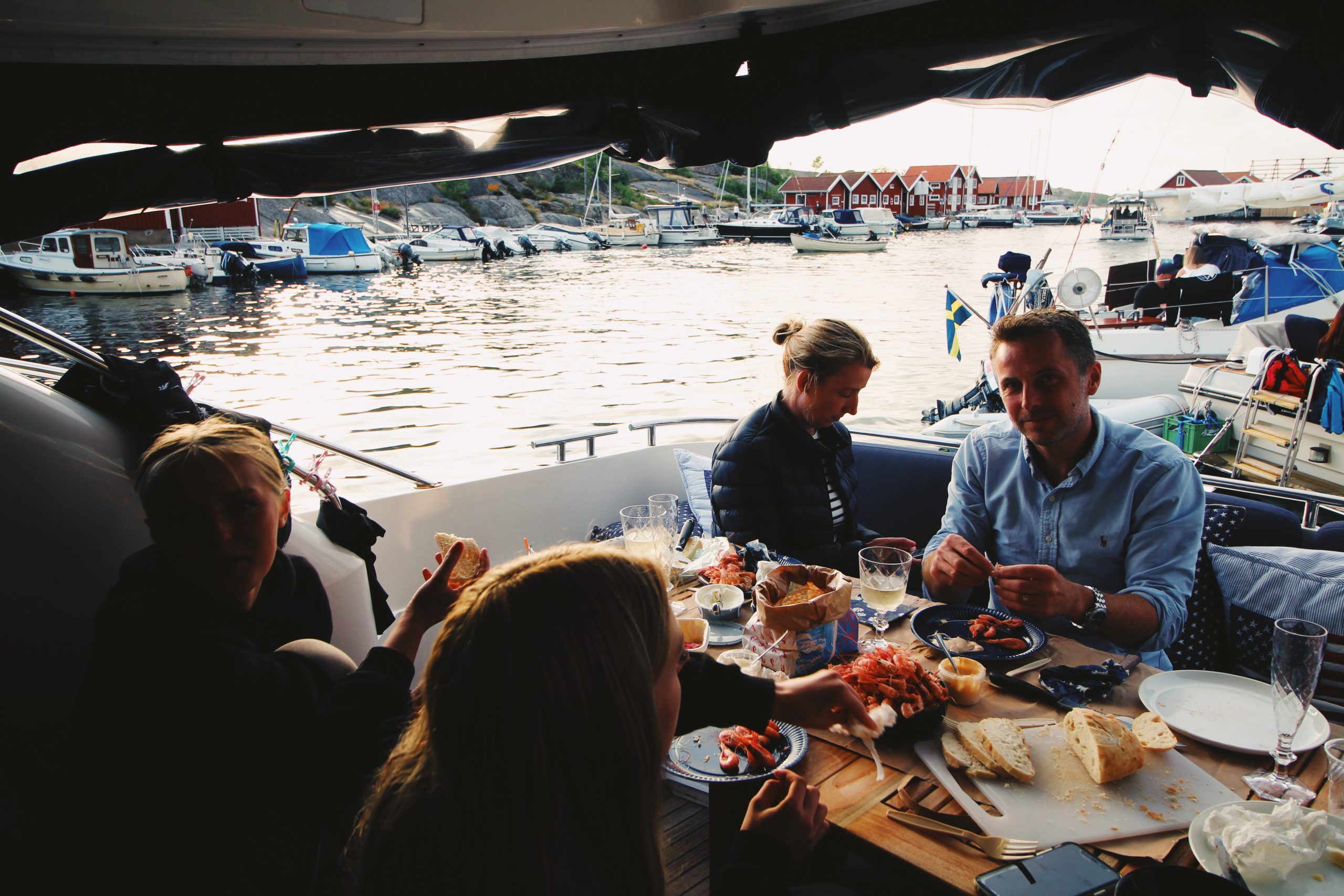 Nästa stopp på båtveckan blev Hunnebostrand. Här bunkrade vi skaldjur och passade på att träffa Kacka, Magnus och Anna som fanns i Bovallstrand.