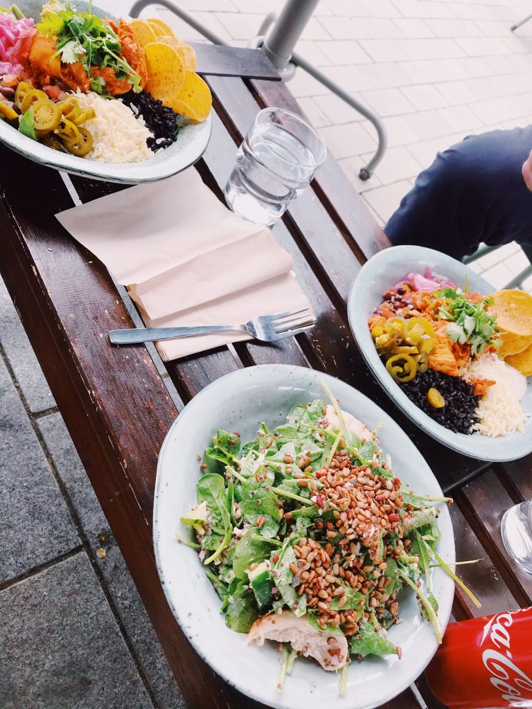 Jag valde en bowl med Ceasarsallad medan mamma och Mr T valde med kyckling och nachos