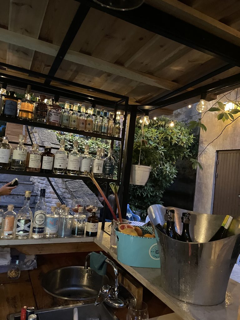 Eftersom de har en Gin-bar inledde vi med varsin drink. Jag valde en med viol och lakrits medan Mr T gick på en med toner och lagring av rött vin. Spännande och goda!