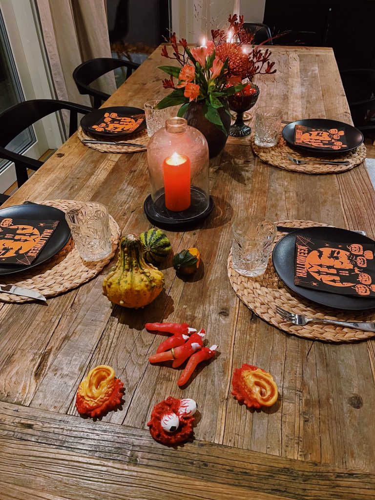 En väldigt trevlig helg som avslutades med lite extra söndagsmys i traditionell halloween-anda. Flera läskiga små monster vid dörren och lite extra orange söndagsdukning…