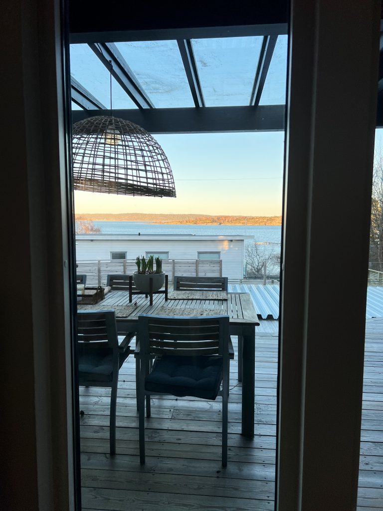 …och den här utsikten från soffan på en härlig solnedgång kan man ju inte klaga på!