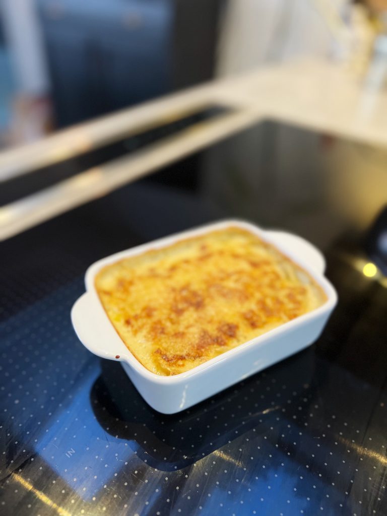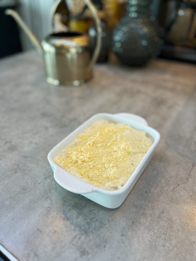 Igår kväll grillade Mr T medan jag kokade ihop en potatisgratäng med rotselleri, vitlök, grädde, torkad ramslök och mycket västerbottenost. Kokar alltid gratängen i en kastrull innan så att man kan smaka av den ordentligt innan jag gratinerar den med ost på toppen i ugnen.