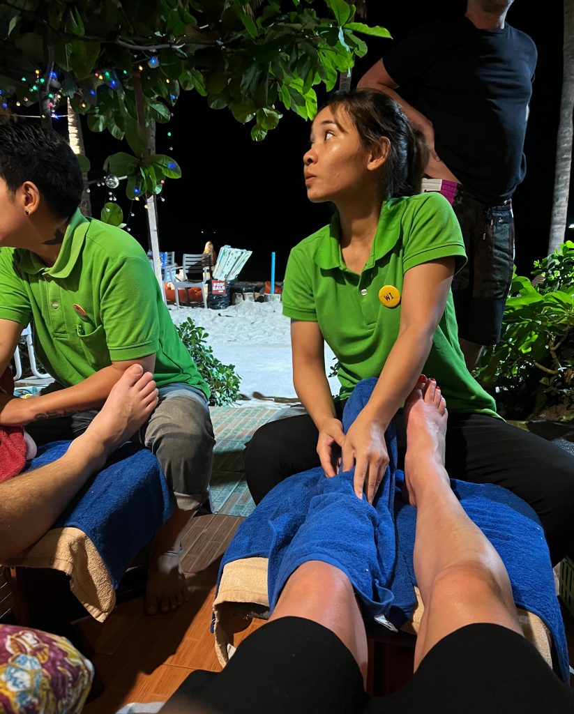 Igår hann vi med två massage (helkroppsmassage och fotmassage), bad (28 grader i vattnet), middag och mangodaiquiri på färsk mango innan vi kröp ner för efterlängtad sömn
