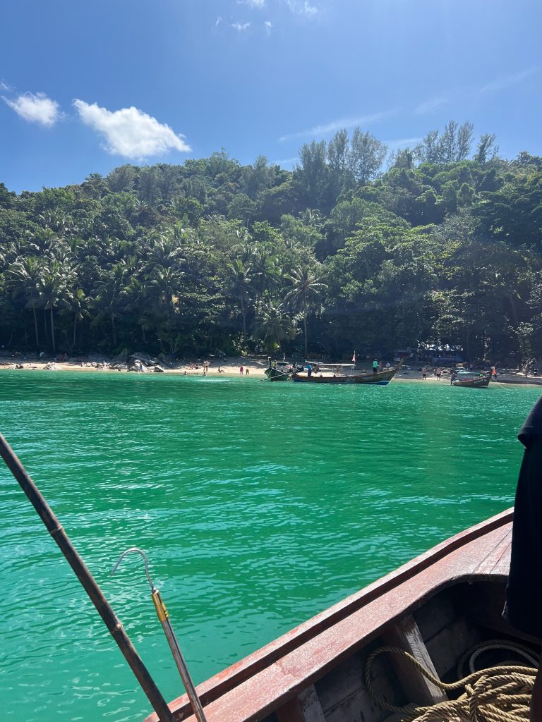Igår hyrde vi longtailbåt och satte kurs mot Banana beach