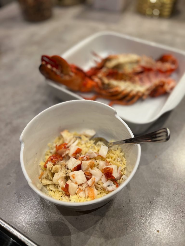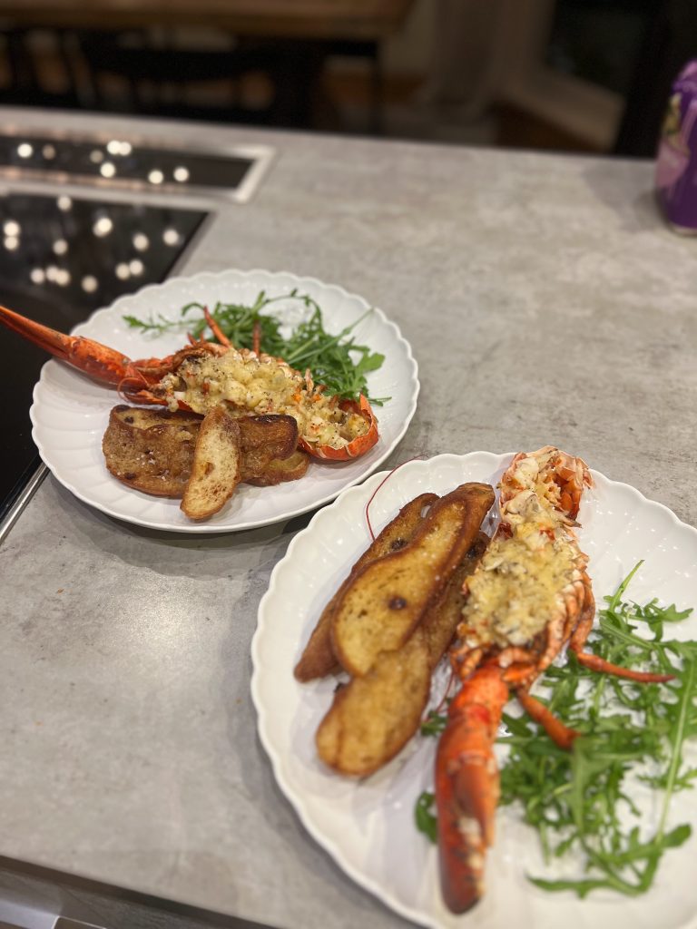 Fyll hummerhalvorna med röran och gratinera i ugnen tills de fått fin färg.