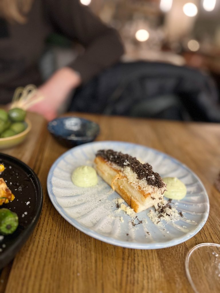 Eftersom vi stannade på hotellet igårkväll bad vi kocken komponera menyn som vi delade. Min favorit? Smörstekt brioche med lagrad ost och riven tryffel!