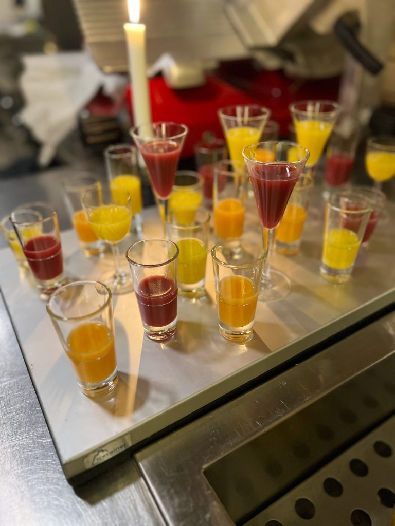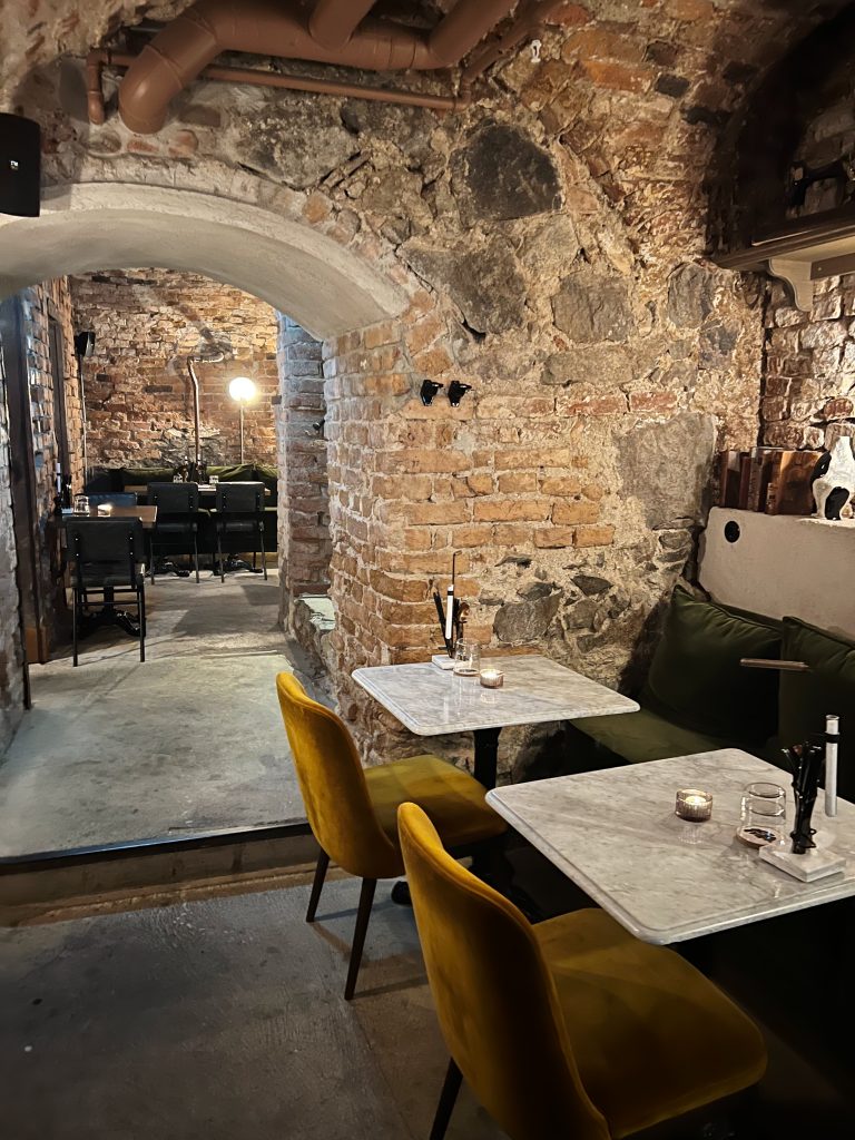 Vi bjöds på bubbel i vinkällaren vid ankomst