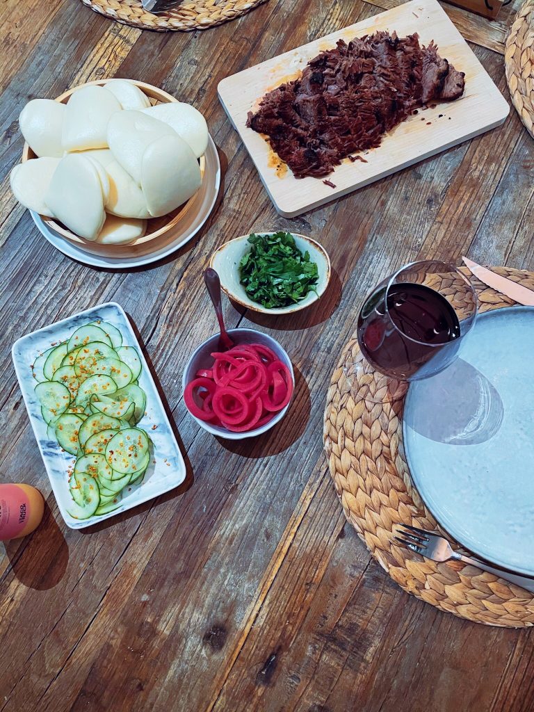 Softbuns köper ni färdiga i frysdisken och värmer antingen på galler i ugn med en plåt med vatten under, alternativt i en bambuinsats till kastrull som brukar säljas billigt i välsorterade matbutiker eller i små asiatiska butiker.