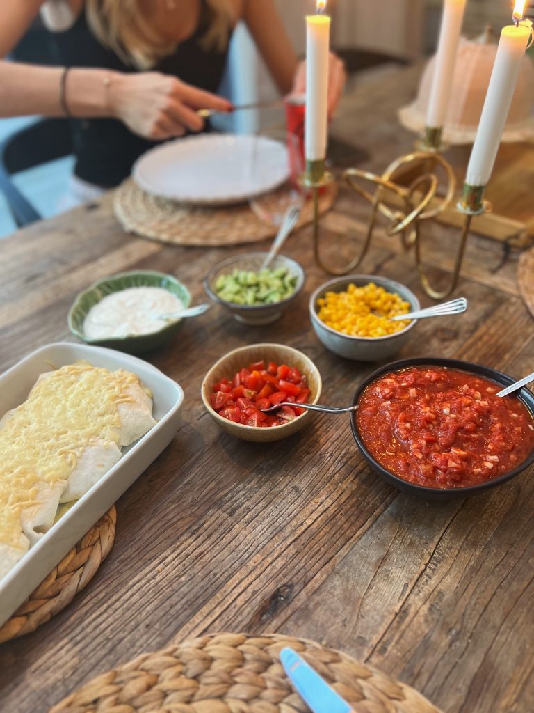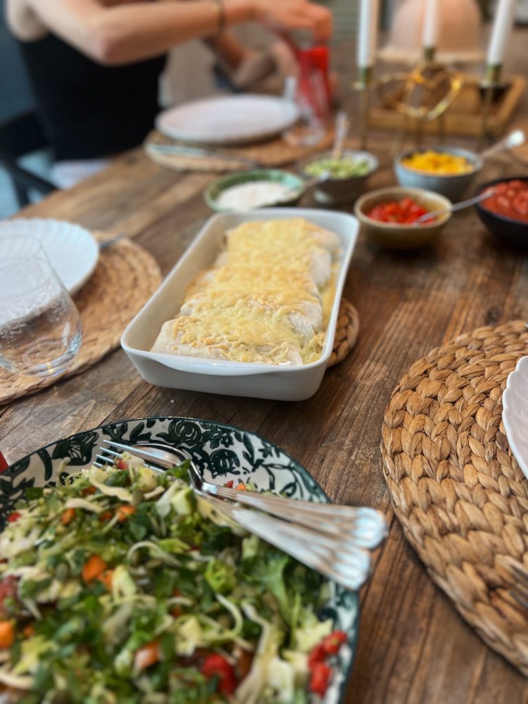 På tisdagen serverade hon enchiladas fyllda med en kycklingröra och sedan gratinerade med ost i ugnen.