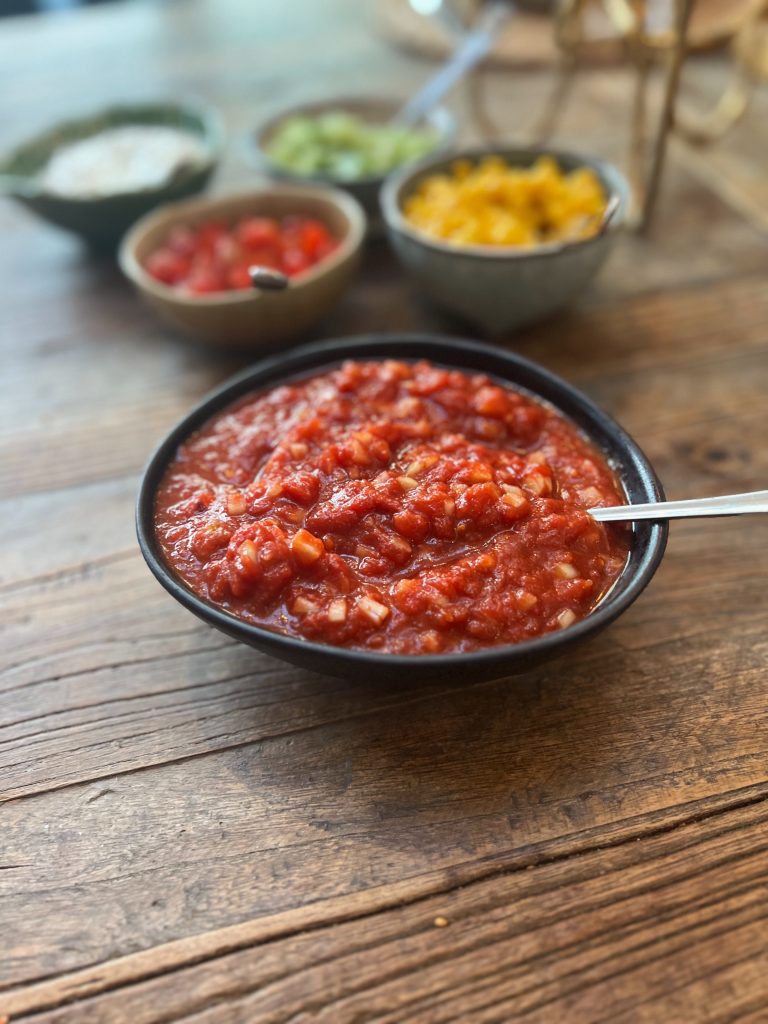 Till detta klassiska tillbehör till tacos samt en kall gräddfil. Vi saknade tacosås hemma, men det ordnades genom att googla fram ett recept på det! Aldrig mer färdigköpt salsa… detta blev mycket godare! receptet hittar ni här