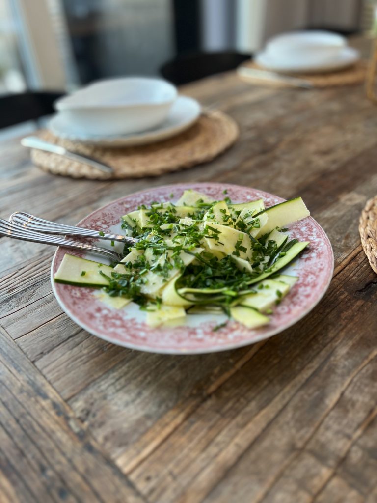 Salladsfreaket i mig var ändå framme och kunde inte låta bli att dra ihop en sallad på hyvlad squash, hyvlad pecorino, rapsolja, svartpeppar och persilja.