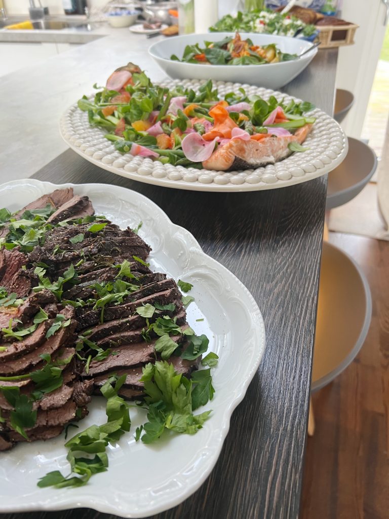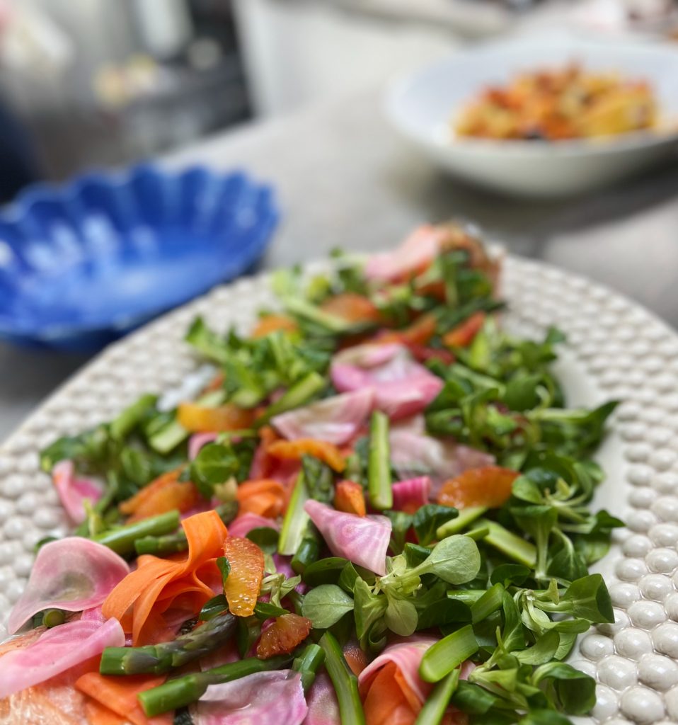 Bjöd bl a på en örtbakad lax med sallad, picklade betor, sparris och apelsinfile