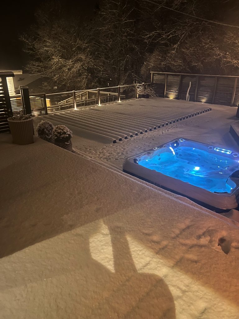 Vi avrundade vardagen med ett bad här. Men räcker det inte med snö och vinter nu? Jag vill ha vår! Gröna gräsmattor, små blommor och tunn jacka!