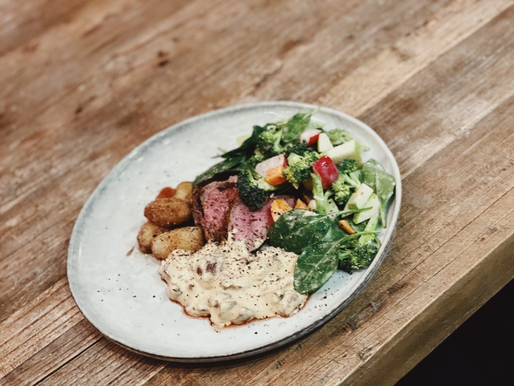 Idag står det 86-års-kalas på schemat, men innan dess tänkte jag tipsa om middagen från igår! Kalvfilé med “dressade” potatisar och champinjonsås. Väldigt smarrigt!
