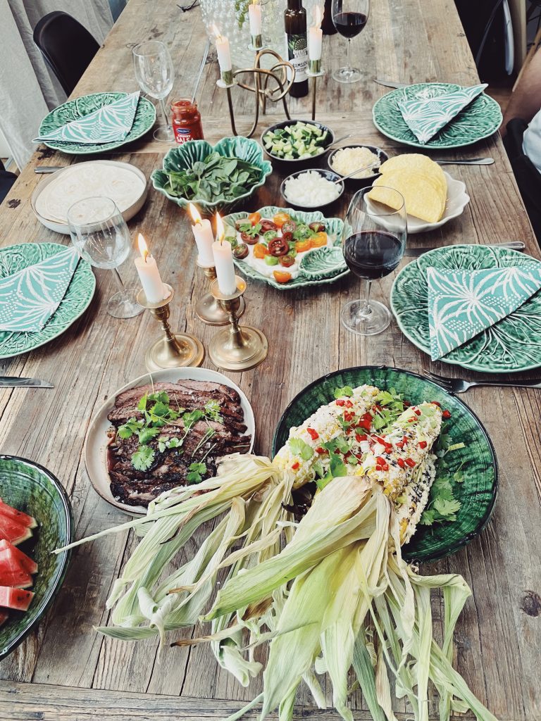 Hemma var Hugo sugen på tacos medan jag ville grilla. Det blev en kombination. Grillad flankstek som rubbats med tacokrydda med ”tacos-tillbehör”