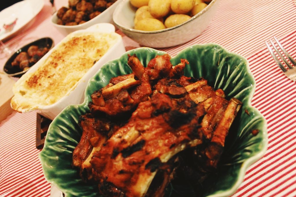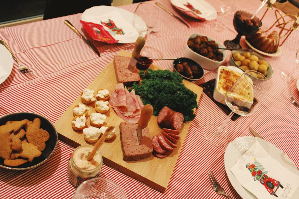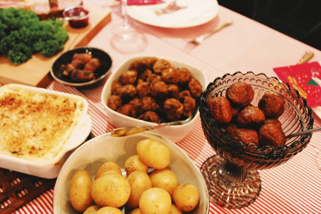 Köttbullar, julglazade revben, plant-based meatballs till Cajsa (bästa finns att köpa på IKEA), potatis, krustader, sill med smak av chili, pepparkakor, ost, ost, ost (det som blev kvar från glögg-minglet som inledde middagen), skinka, grönpepparpaté, leverpastej och JANSSON. Yes, denna blev faktiskt hur bra som helst! Receptet är för en liten pytte-form