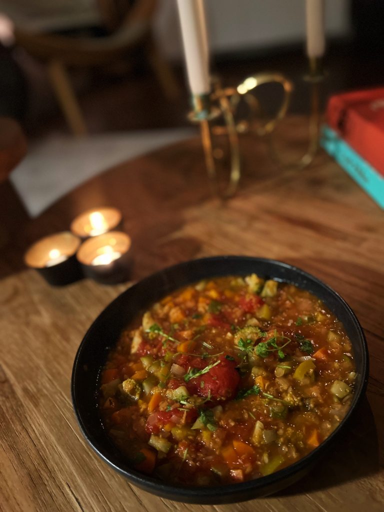 En återkommande rätt är linssoppan som jag ofta lovordar! Älskar att äta den och hur smakerna kommer fram när den får koka riktigt länge på spisen med en gnutta chili och lite koriander.