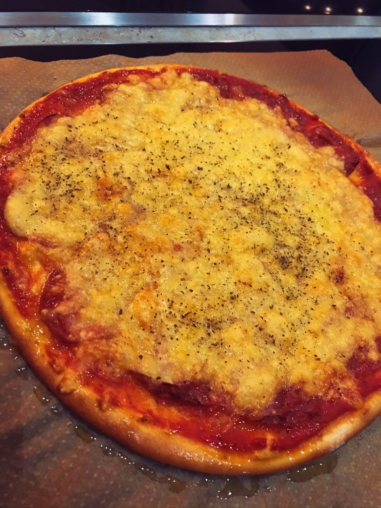 Kan avslöja att detta nog faktiskt blev en liten favorit bland de tre. Lisa som beställt Benjamins Pizza cacio e pepe stal snabbt en slice från Hugo. Hugo kontrade med att snabbt sluka flera bitar… Till slut var fatet helt tomt…